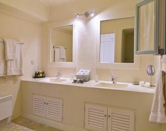 Lower floor: Two double bedrooms en suite. One twin bedroom suitable for children and one bathroom. Four separate guest double rooms en suite.