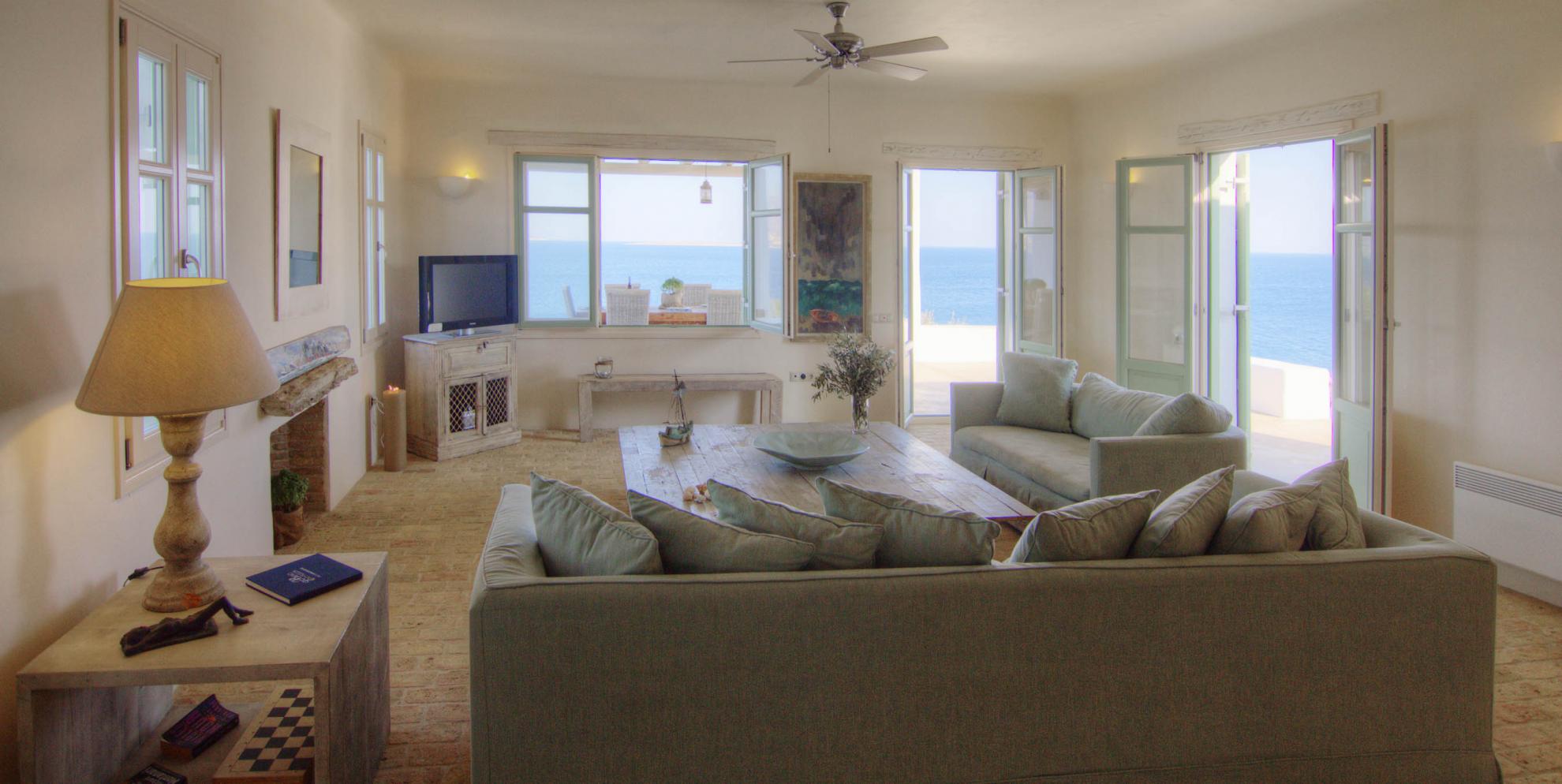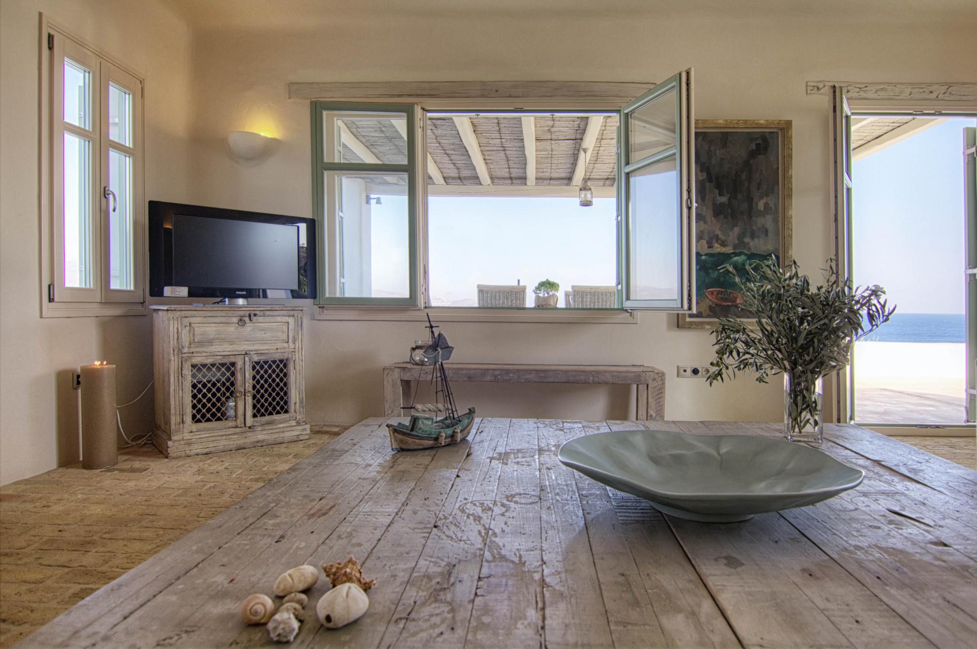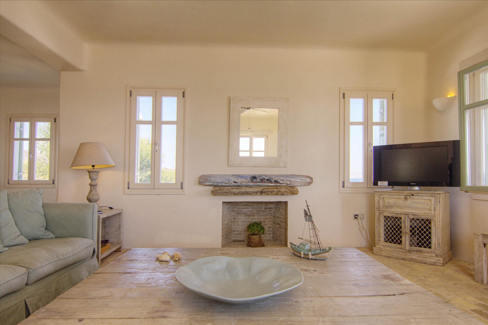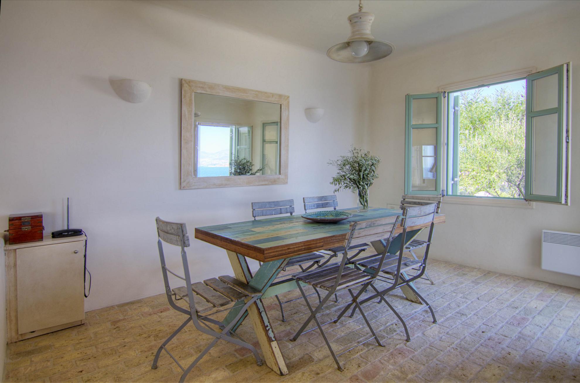 Ground level: living room with fireplace, dining area and fully equipped open plan kitchen.