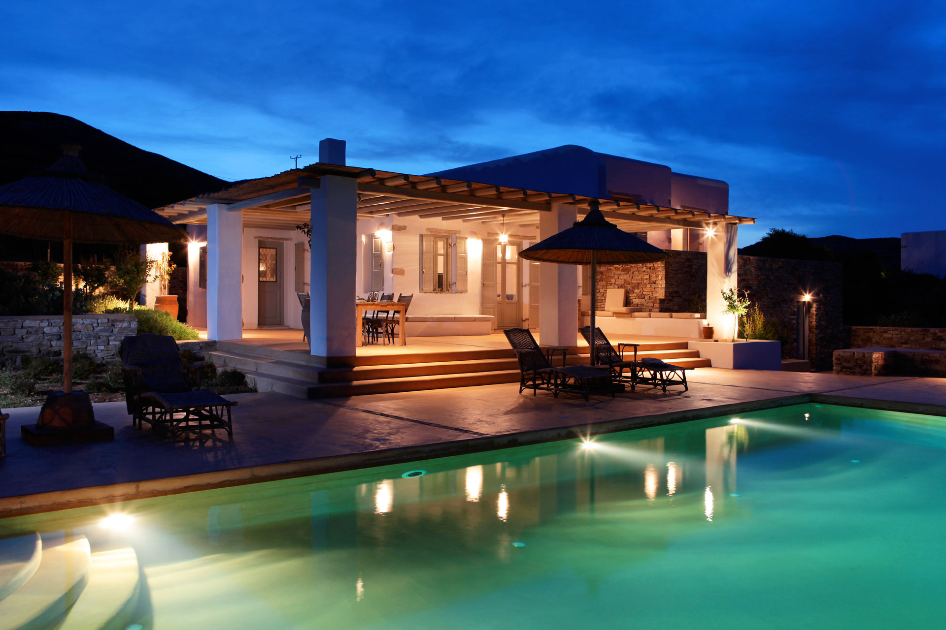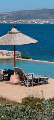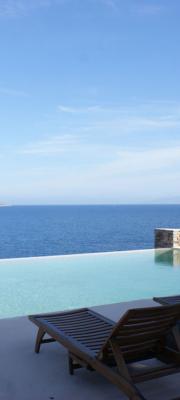 The five independent villas are situated within a large plot of land exactly by the coastline and they are all designed with great respect towards the natural landscape and traditional architecture. Each villa is a combination of minimalistic white-washed structures and impressive dry-stone walls, surrounded by a lush garden full of plants, flowers and aromatic herbs that flourish in the Mediterranean climate. At the same time, each dwelling possesses a private pool that blends harmoniously into the horizon, along with a terrace with extraordinary panoramic views of the Aegean Sea and the nearby islands. Finally, all five villas are fully equipped according to top-notch specifications, satisfying this way the need for privacy of unrivalled comfort and aesthetics.